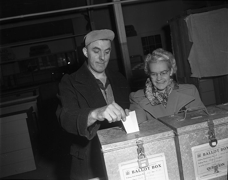 Le scrutateur vérifie le bulletin de vote sans le déplier pour s’assurer que le numéro qui y figure est bien le même que celui fourni à l’électeur. On dépose ensuite le bulletin de vote dans l’urne électorale après avoir détaché le talon où figure le numéro d’identification.